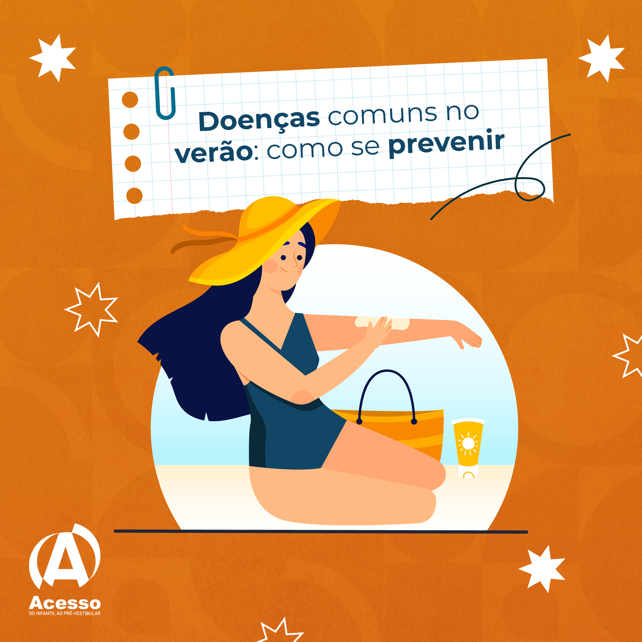 Segundo especialistas da área de saúde, as doenças mais comuns no verão brasileiro são: dengue, chikungunya, febre amarela, micose, otite, desidratação, insolação e intoxicação alimentar. Por isso, fique ligado nas nossas dicas! Neste texto, trouxemos para você as principais formas de prevenção dessas doenças, confira:
